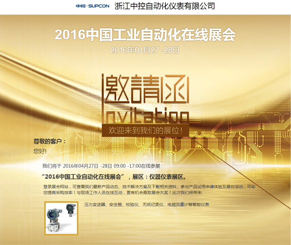 2016中国工业自动化在线展会,进入工业自动化在线展会后点击左侧“仪器仪表展区”,进入“仪器仪表展区”后进入中控仪表展台。